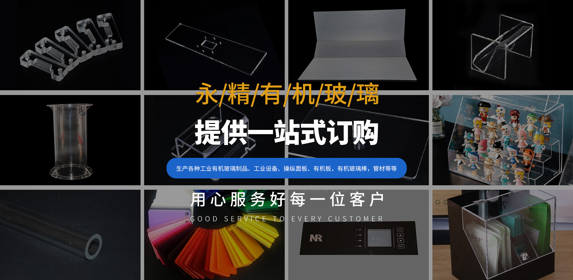 公司是一家生產各種工業有機玻璃制品、工業設備、操縱面板、有機板,有機玻璃棒,管材等等。